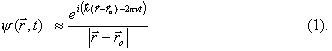at instant t (this important result can be derived from Born rule). According to de Broglie relations, the wave function associated with a beam of atoms with equal momentum p and energy E, is a monochromatic wave of wavelength l = h/p and frequency n = E/h. For instance, a spherical wave provides a good approximation of the wave function associated with an atom propagating from a point-like source: