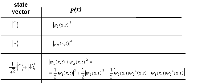 Suppose that there is no way - neither in principle - to know if the atom has followed a '↑' path or a ‘↓' path (the paths are said in this case to be indistinguishable). The state vector representing this situation is the following: