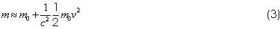 then the pre-relativistic mass appearing in Newton's equations has to be replaced by a velocity-dependent quantity, namely that defined in eq. (2).