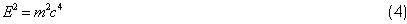 Anti-particles are connected to the formal existence of negative energy solutions of equation (4). In general, the solutions of relativistic equations representing particle motion propagate in a four-dimensional formal structure called Minkowski space-time. Whithin such a stucture, equation (4) only allows for negative energy solutions running backward in time (whereas the positive energy solutions run forward). From the viewpoint of an observer running forward in time, however, an electron associated with negative energy and moving backward in time appears to be acting like a positive energy electron traveling forward in time except for the fact that it reacts to electromagnetic field as if its electric charge were positive .